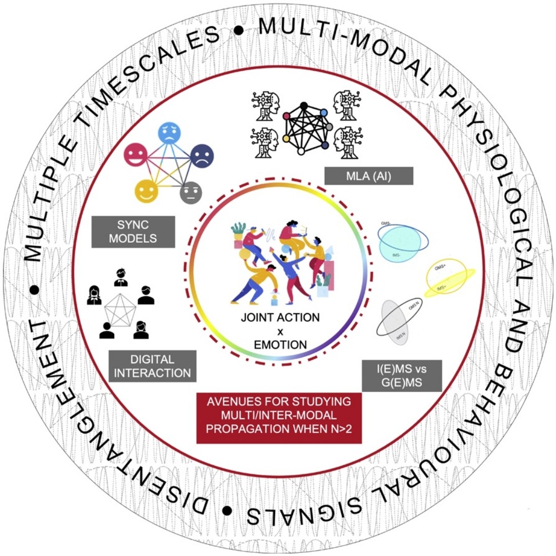 Notre vie quotidienne est riche de moments d’action conjointe, par exemple des enfants qui jouent, des adultes qui collaborent, ou des inconnus naviguant dans une foule. L’action conjointe réunit des individus (et l’incarnation de leurs émotions) dans l’espace et le temps. Pourtant, on sait peu de choses sur la manière dont les émotions individuelles se propagent dans un groupe par le geste, ou sur la manière dont l’action conjointe modifie les émotions individuelles. La composante multi-agents est en effet largement absente des approches neuroscientifiques des émotions, et inversement, la recherche sur l’action conjointe n’a pas encore intégré l’émotion comme un paramètre clé pour modéliser l’interaction socio-motrice.